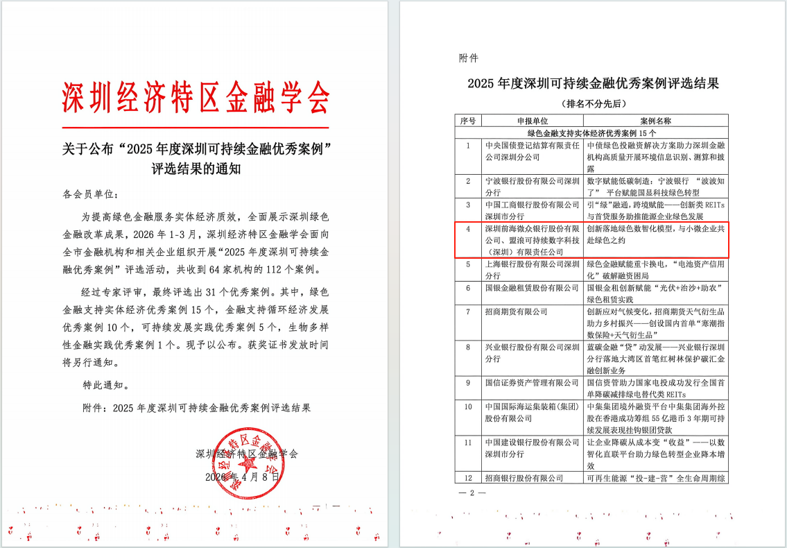 盟浪联合微众银行数据模型项目入选深圳金融创新监管工具