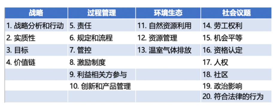 资料来源:《德国可持续发展守则》、社投盟研究院整理
