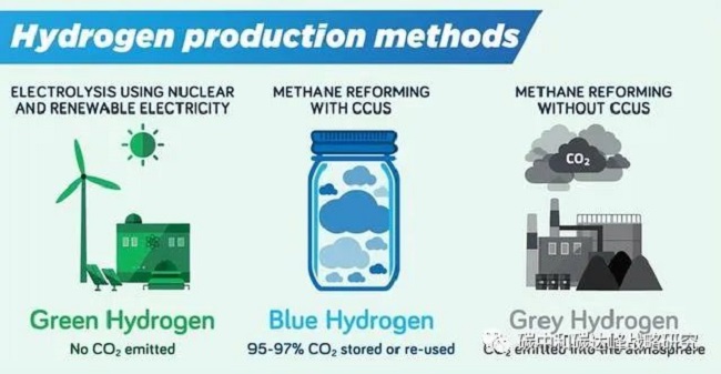 氢按照其在生产过程中的碳排放情况分为绿氢、蓝氢和灰氢。