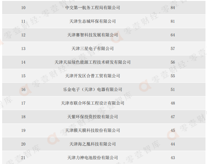 表1:2008年至今天津市企业绿色专利申请总数排名前30