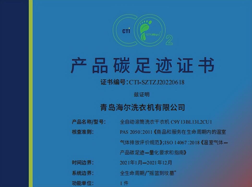 在国家实施双碳战略的背景下,推动ESG与双碳战略的落地,正在成为企业可持续发展的新方向之一。而近日,海尔洗衣机在落地ESG与双碳战略方面又有了新成果。海尔洗衣机旗下中子和美洗衣机获CTI颁发《产品碳足迹证书》,成为了节能减排的标杆产品,也为行业落地双碳战略奠定了基础。