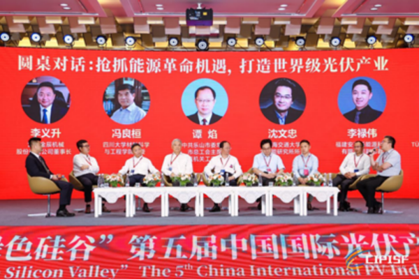 圆桌对话环节围绕“抢抓能源革命机遇,打造世界级光伏产业”这一主题,就产业发展规划、提升核心竞争力、促进节能减排等话题进行了智慧碰撞。