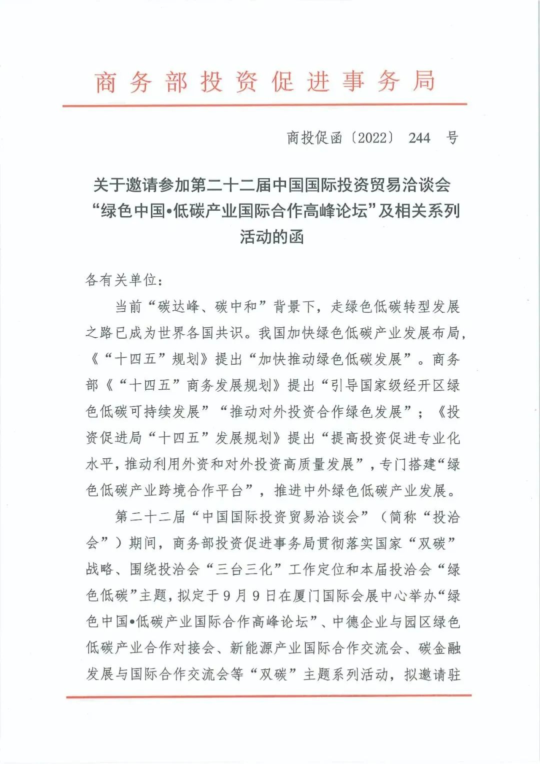 当前“碳达峰、碳中和”背景下,走绿色低碳转型发展之路已成为世界各国共识。我国加快低碳产业发展布局,《“十四五”规划》提出“加快推动绿色低碳发展”,商务部《“十四五”商务发展规划》提出“引导国家级经开区绿色低碳可持续发展”“推动对外投资合作绿色发展”;《投资促进局“十四五”发展规划》提出“提高投资促进专业化水平,推动利用外资和对外投资高质量发展“,专门搭建“绿色低碳发展跨境合作平台”,推进中外绿色低碳产业发展。