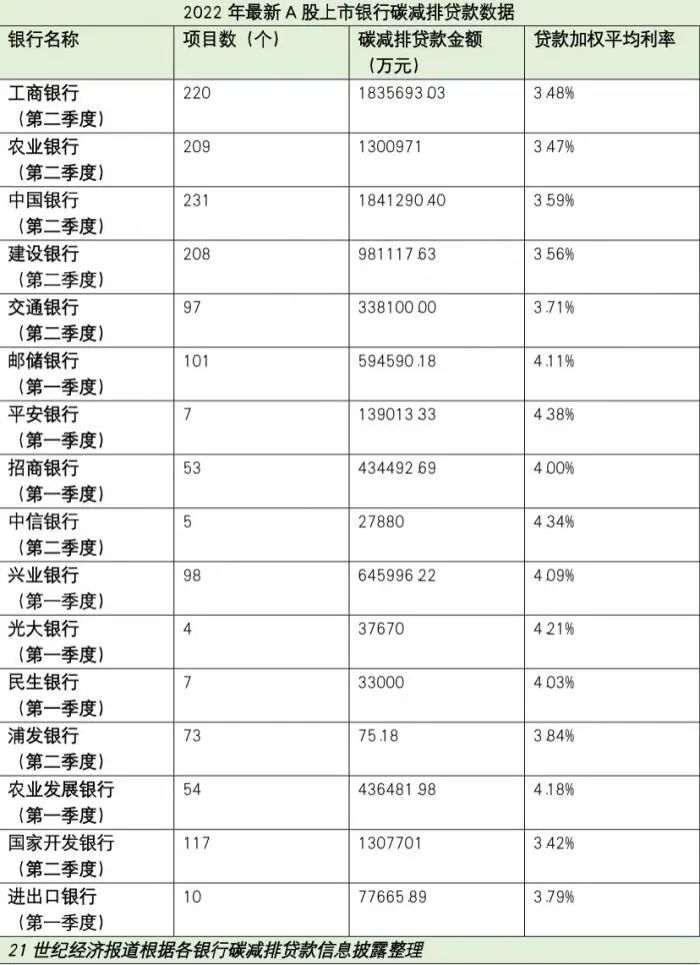 据21世纪经济报道不完全统计,截至发稿前,共16家银行公布了今年碳减排支持工具贷款额度。包括国家开发银行、工商银行、农业银行、中国银行共4家银行碳减排贷款金额超过百亿。