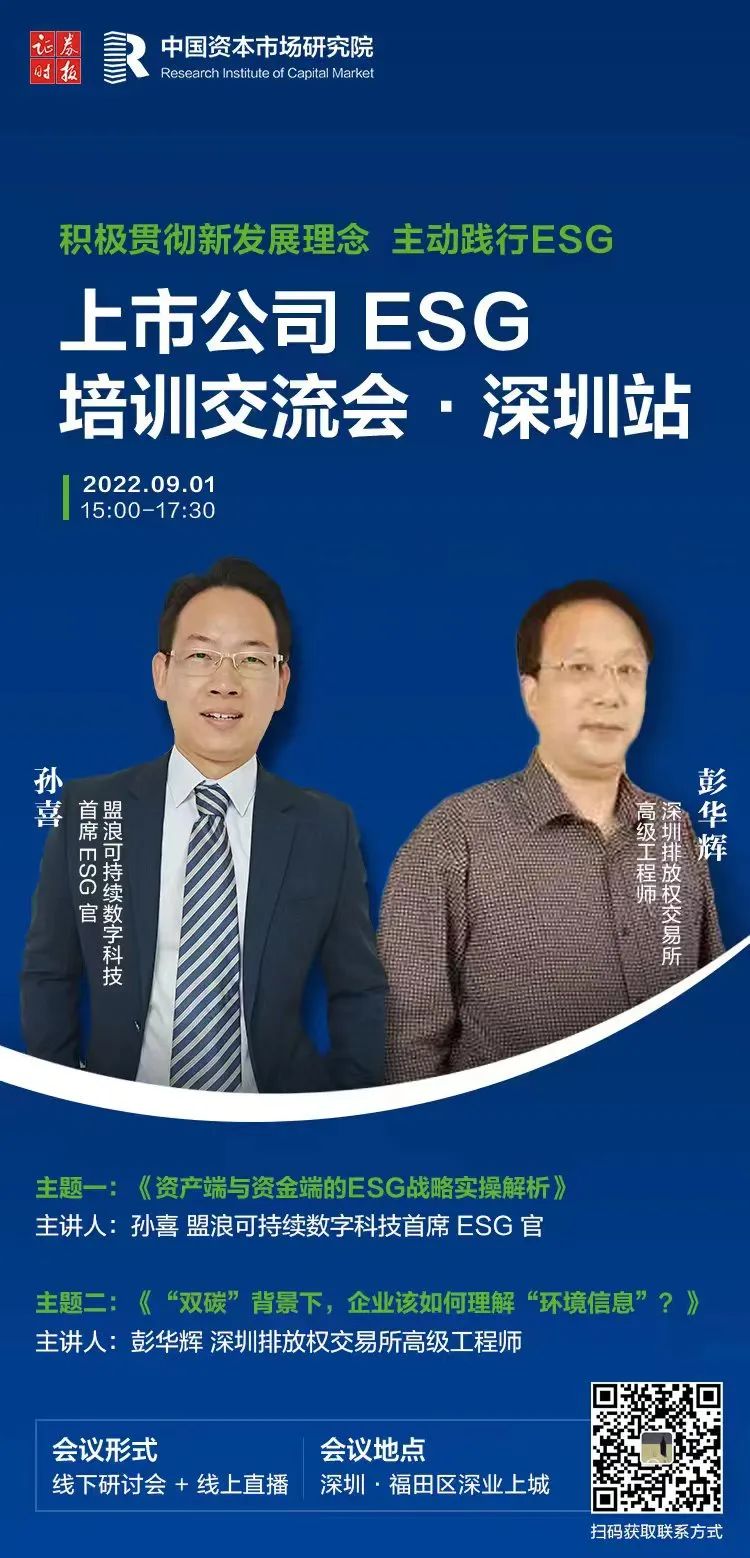 2022年9月1日(周四),ESG培训与交流(线上+线下)