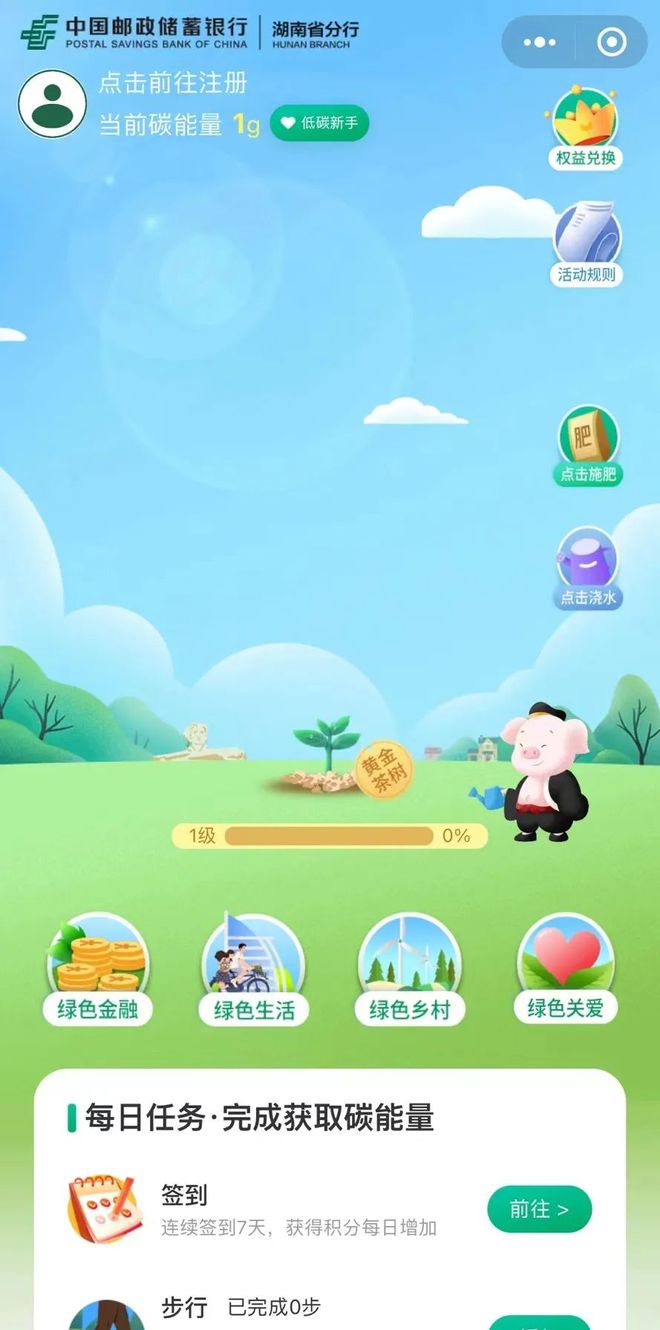 记者了解到,“C邮记”完成注册后,用户可以在“绿色金融”“绿色生活”“绿色乡村”“绿色关爱”四个场景里完成活动任务,获得碳能量奖励。同时,每位用户将获得一株虚拟黄金茶树树苗,通过碳能量可兑换道具,培育茶苗。待树长成,用户将获得纪念勋章和黄金茶茶叶。除了培育树苗,“碳能量”还可用于兑换公交券、地铁券等权益,或是捐献于公益活动。