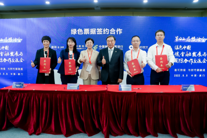 盟浪碳融通发布环节,在盟浪董事长马蔚华、中国邮政储蓄银行金融同业部总经理杨西琳、中兴新通讯有限公司董事长韦在胜(线上参与)的见证下,盟浪可持续数字科技(深圳)有限责任公司与上海派能能源科技股份有限公司、盈科数字科技(深圳)有限公司、中国邮政储蓄银行上海分行现场签署了四方合作协议,基于碳融通中的绿色票据判定应用,实现了数字科技赋能的绿色票据场景的创新落地。