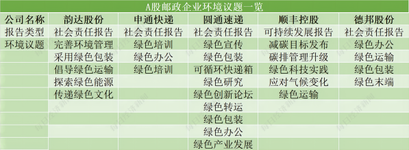 尽管上述公司已将绿色理念和绿色设计贯穿各业务场景,但在具体的环境数据披露方面,还有较高的提升空间。目前,5家邮政业公司中仅顺丰披露了相关的碳排放数据和能耗数据,其他四家公司均未提及。对于公众和投资者来说,需要直观看到企业在节能减排的成效,并有历史数据进行对比,缺失数据不利于投资者作出判断和决策,也不利于对“双碳”目标的科学测量和有效推进。