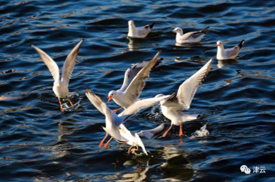 七里海湿地生机勃发,各种鸟类在湿地上空结伴翱翔